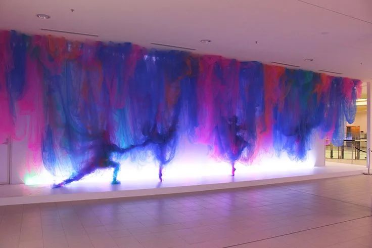 Danielle: Benjamin Shine uses tulle to form these amazing sculptural portraits. This installation, 'The Dance' explores ideas of impermanence and the fleeting moment, which are conveyed through the inherent qualities of the delicate tulle material.